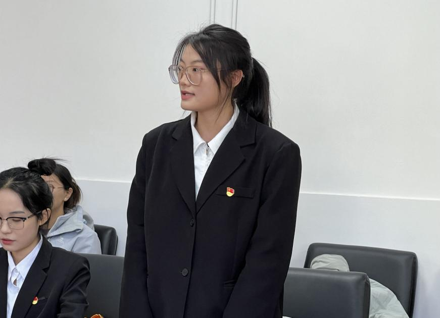 学院党委书记孙冬梅首先代表学院党委祝贺两位同志按期转正。她指出,支部党员大会是提高党性修养的重要载体。此次大会程序规范、严肃活泼,体现了2023级硕士生党支部全体成员良好的政治素养。希望2023级硕士生党支部全体党员在今后的工作中能够更加严格要求自己,更好地在学习、生活、工作等方面起到表率作用。