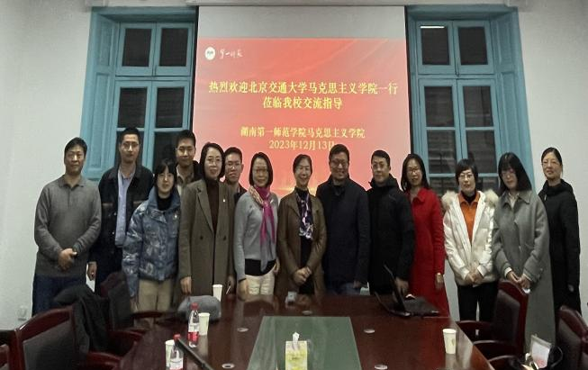 13日上午,各位成员又参观了湖南第一师范学院(城南书院校区),青年毛泽东曾在此求学、任教。支部成员详细了解城南书院的发展、第一师范的历史和青年毛泽东在此学习和工作的情况,“恰同学少年,风华正茂,书生意气,挥斥方遒,指点江山,激扬文字,粪土当年万户侯”。参观结束后,一行人与湖南第一师范学院免费色情影片 的领导和老师进行了深入交流,学院书记阮东彪详细介绍了一师马院的发展建设情况,并与王竹苗副院长、胡慧娥副院长和各教研室主任交流毛泽东思想和中国特色社会主义理论体系概论、习近平新时代中国特色社会主义思想、形势政策课、社会实践课的开设、运行情况。其中,一师的“重走主席游学路”的社会实践设计给大家留下深刻印象。双方明确日后要加强交流,互通有无,充分利用好红色资源开展思政课教学。
