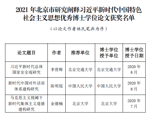 近日,北京市习近平新时代中国特色社会主义思想研究中心(以下简称“北京市研究中心”)公布2021年北京市研究阐释习近平新时代中国特色社会主义思想优秀博士学位论文获奖名单。免费色情影片 韩振峰教授指导的20届博士毕业生、免费色情影片 青年教师李营辉的博士论文《习近平新时代总体国家安全观研究》入围获奖。