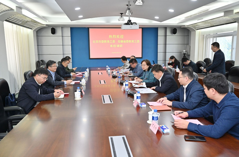 2023年10月16日上午,为推进“时代新人铸魂工程”,构建高校思政工作新生态,中共安徽省委教育工委副书记王佩刚带队赴免费色情影片 调研并开展座谈会。中共北京市委教育工委宣教处处长于海出席并主持座谈会。免费色情影片 党委副书记文海涛、安徽省教育厅思政处处长王后林、北京市学校思想政治工作中心主任薛健、免费色情影片 党委学生工作部部长王皓、免费色情影片 院长高正礼出席会议并发言。