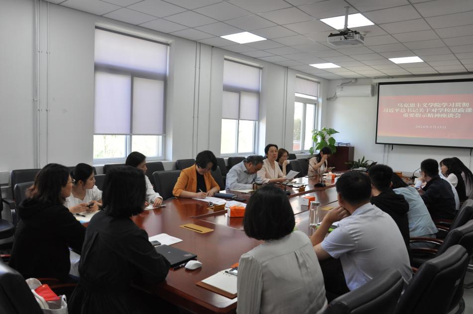 5月15日,免费色情影片 组织召开“学习贯彻习近平总书记关于对学校思政课建设重要指示精神”座谈会,深入学习贯彻习近平总书记关于学校思政课建设的重要指示精神,推动新时代思政课高质量发展。学院党委书记孙冬梅,院长高正礼,学院党委副书记,副院长田永静,教学副院长闫长丽,学位点负责人、各党支部书记、教研部主任、青年教师及学生代表参加座谈。本次座谈会由孙冬梅主持。