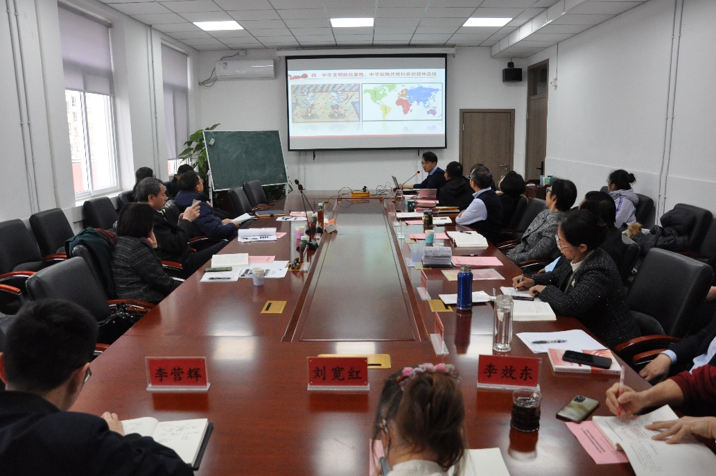 “习近平新时代中国特色社会主义思想概论”教研室张伦阳老师进行说课,与会教师进行点评和交流研讨。