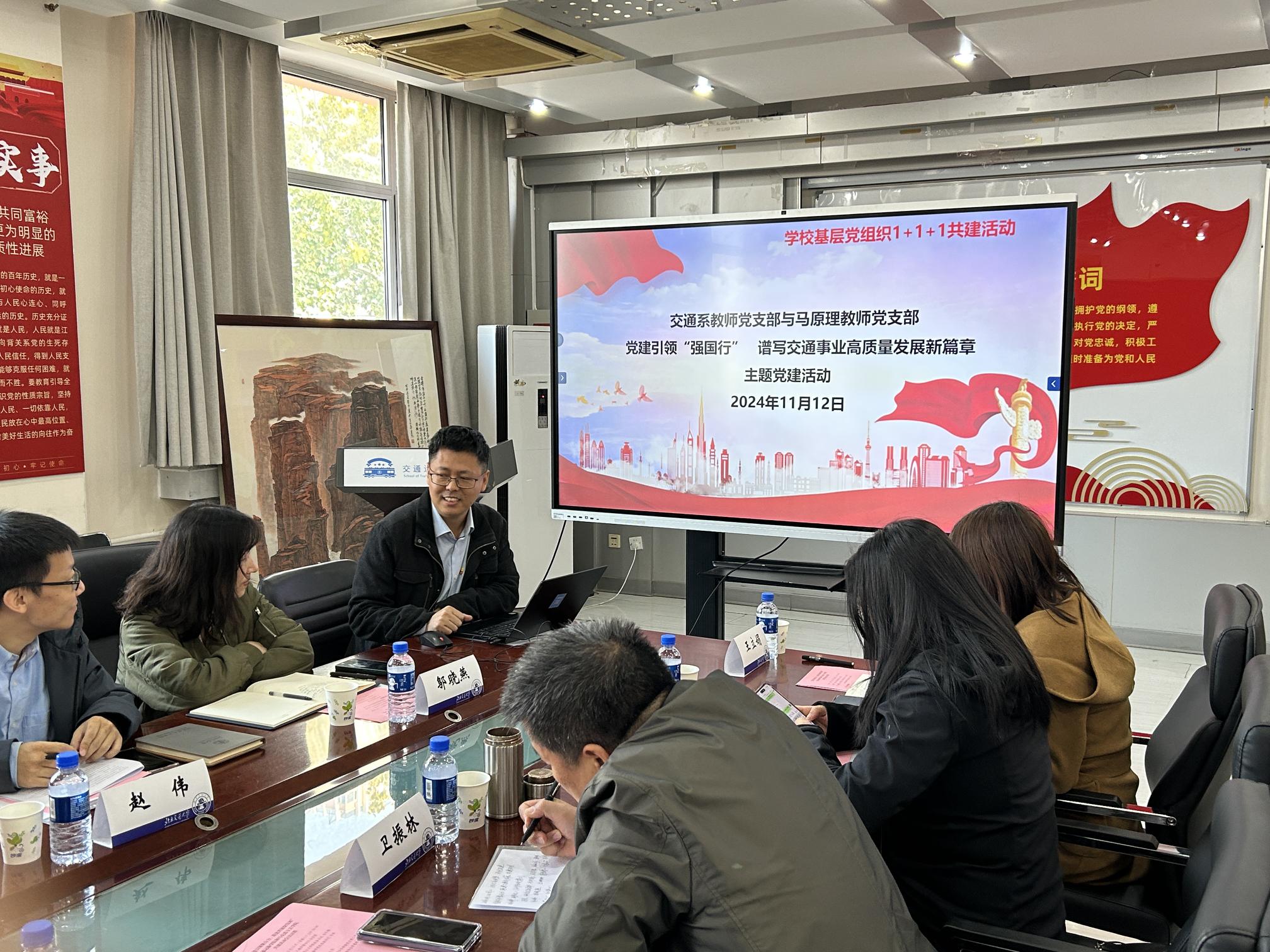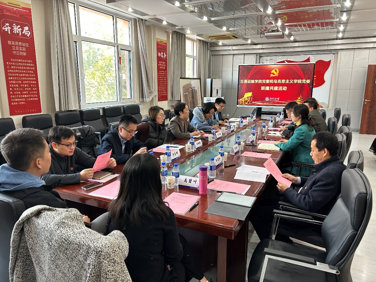 为深入贯彻党的二十届三中全会和全国教育大会精神,充分发挥党组织政治核心作用和党建引领作用,进一步推进学校新时代基层党建“对标争先”行动,促进党建与业务工作深度融合,提升党组织建设质量和水平。11月12日上午,马克思主义学院与交通运输学院在8415会议室开展“党建引领聚合力,联建共建促发展”主题活动。马克思主义学院党委书记孙冬梅,党委副书记、副院长田永静,交通运输学院党委副书记李涛出席会议,全体教职工党支部书记和专职组织员参加会议。