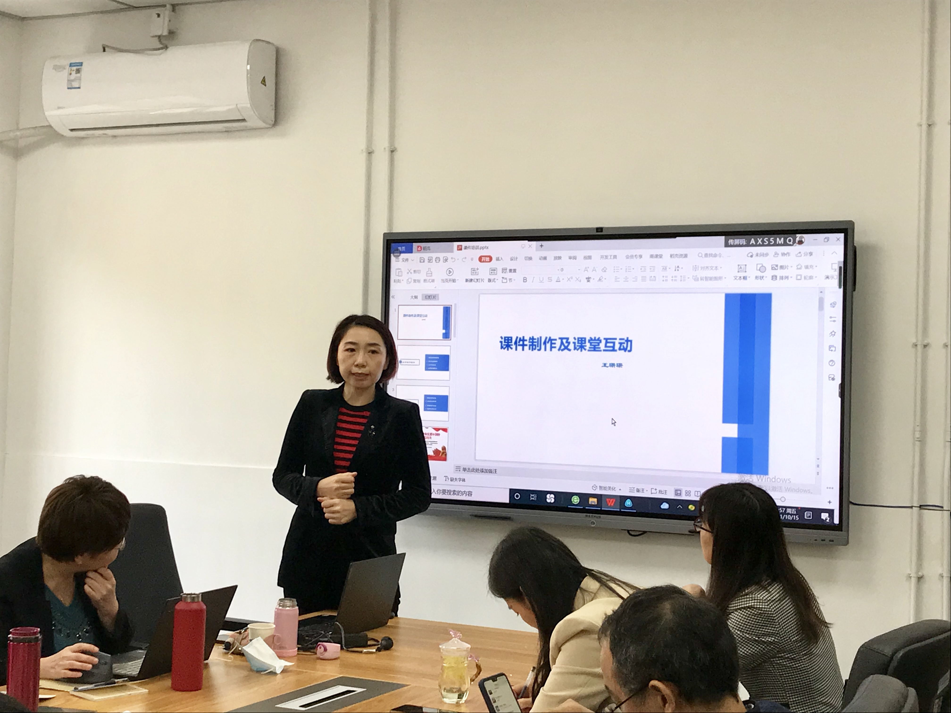 王珊珊老师向大家分享了课件制作方法及课堂互动的相关内容,提升课件质量不仅能激发学生对授课内容的兴趣,还可以充当课本教材的补充资料,成为课堂上师生交流的“桥梁”,以学生喜爱的方式加强与学生的互动更能贴近学生生活,走进学生内心。