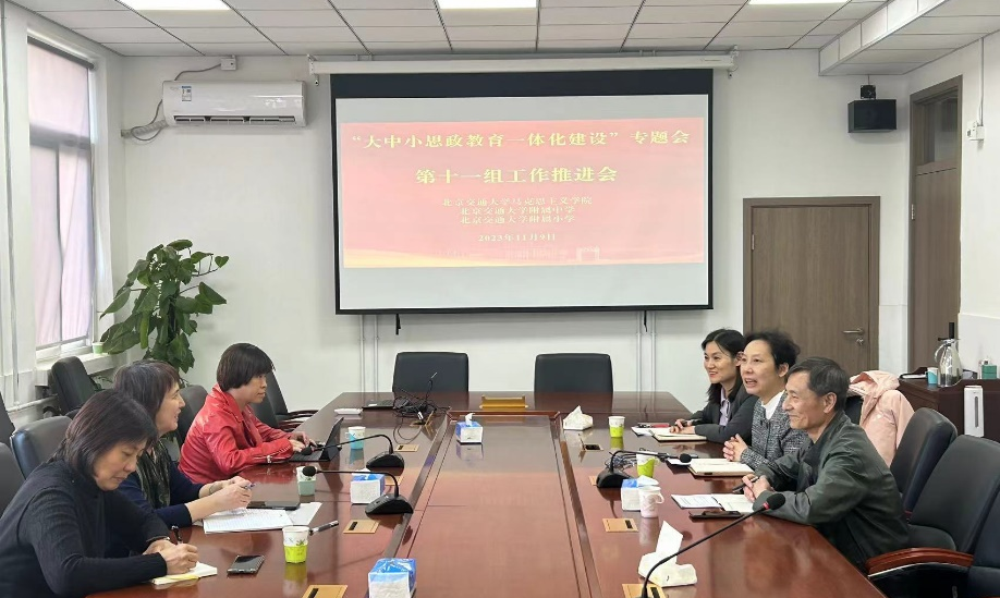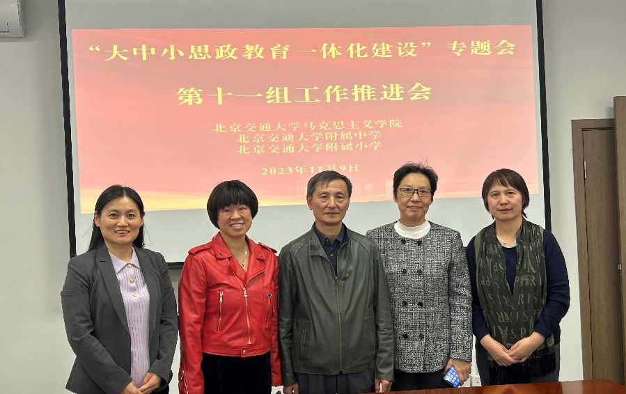 为落实北京教育系统关工委“五老”助力“大中小思政教育一体化建设”会议精神,11月9日下午,北京交通大学召开“大中小思政教育一体化建设”专题会。北京交通大学关工委书记杜永平、北京交通大学马克思主义学院党委书记孙冬梅、副院长闫长丽、北京交通大学附属中学副校长苏曲光、北京交通大学附属小学校长郑云宏、副校长徐向欣参加本次专题会。孙冬梅主持本次会议。